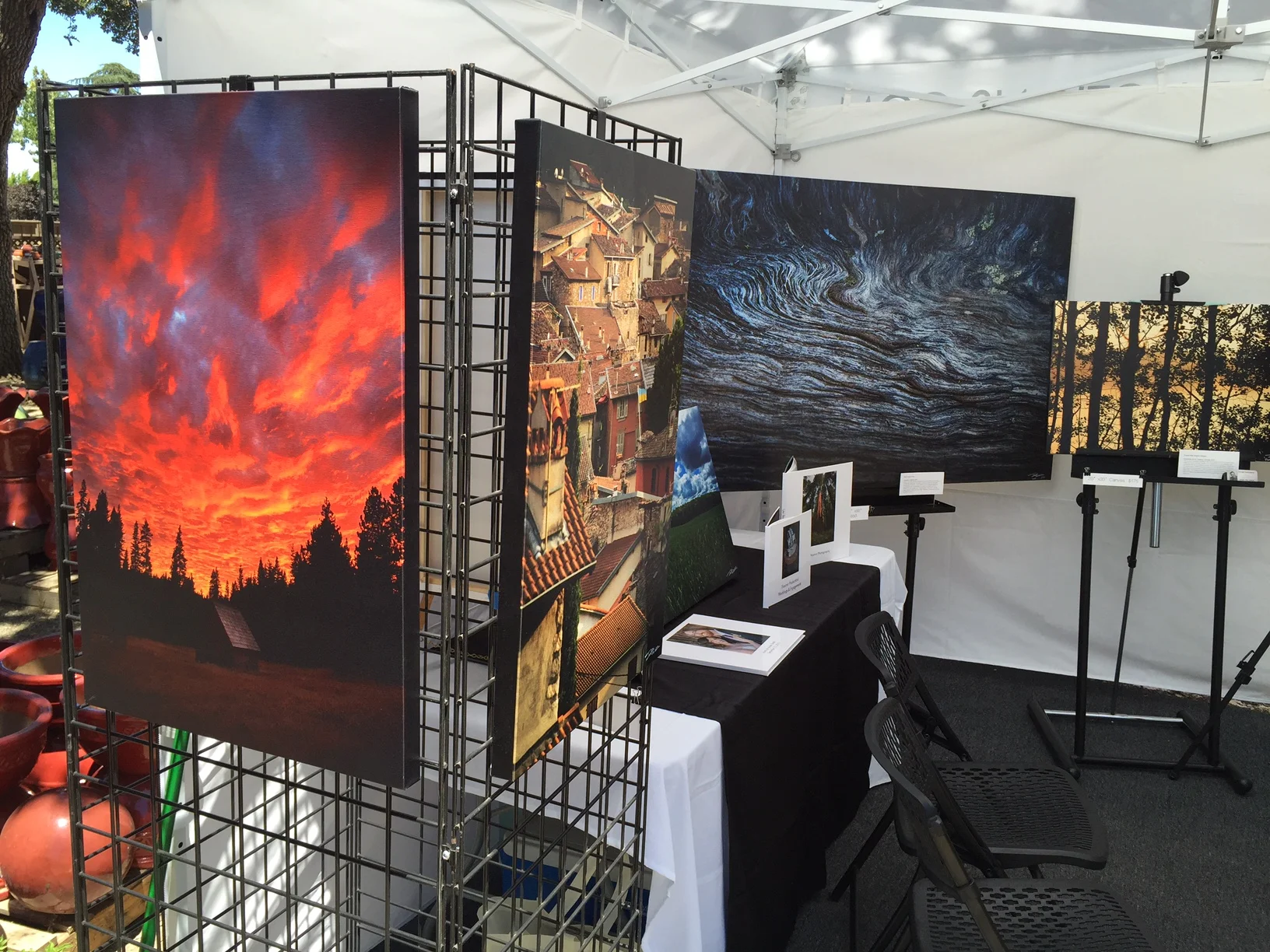 Close up of Tyler's booth display at Art Under the Oaks 2016