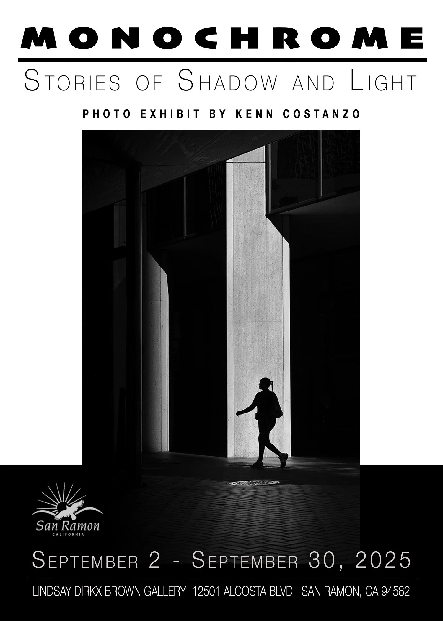 Kenn’s newest solo exhibition “MONOCHROME: Stories of Shadow & Light” is on view September 2-30, 2025 at the Lindsay Dirkx Brown Art Gallery, 12501 Alcosta Blvd, San Ramon, CA. M-F 8:30A-5P
